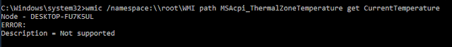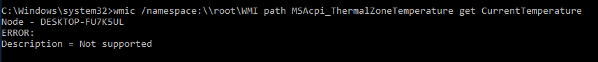 The sixth technique checks the current CPU temperature of the system (the MSAcpi_ThermalZoneTemperature entry). Indeed, some hypervisors (VMWare, VirtualBox and Hyper-V) do not support temperature check. The WMI request simply replies "not supported". This behaviour can be used to detect if the targeted system is a real machine.